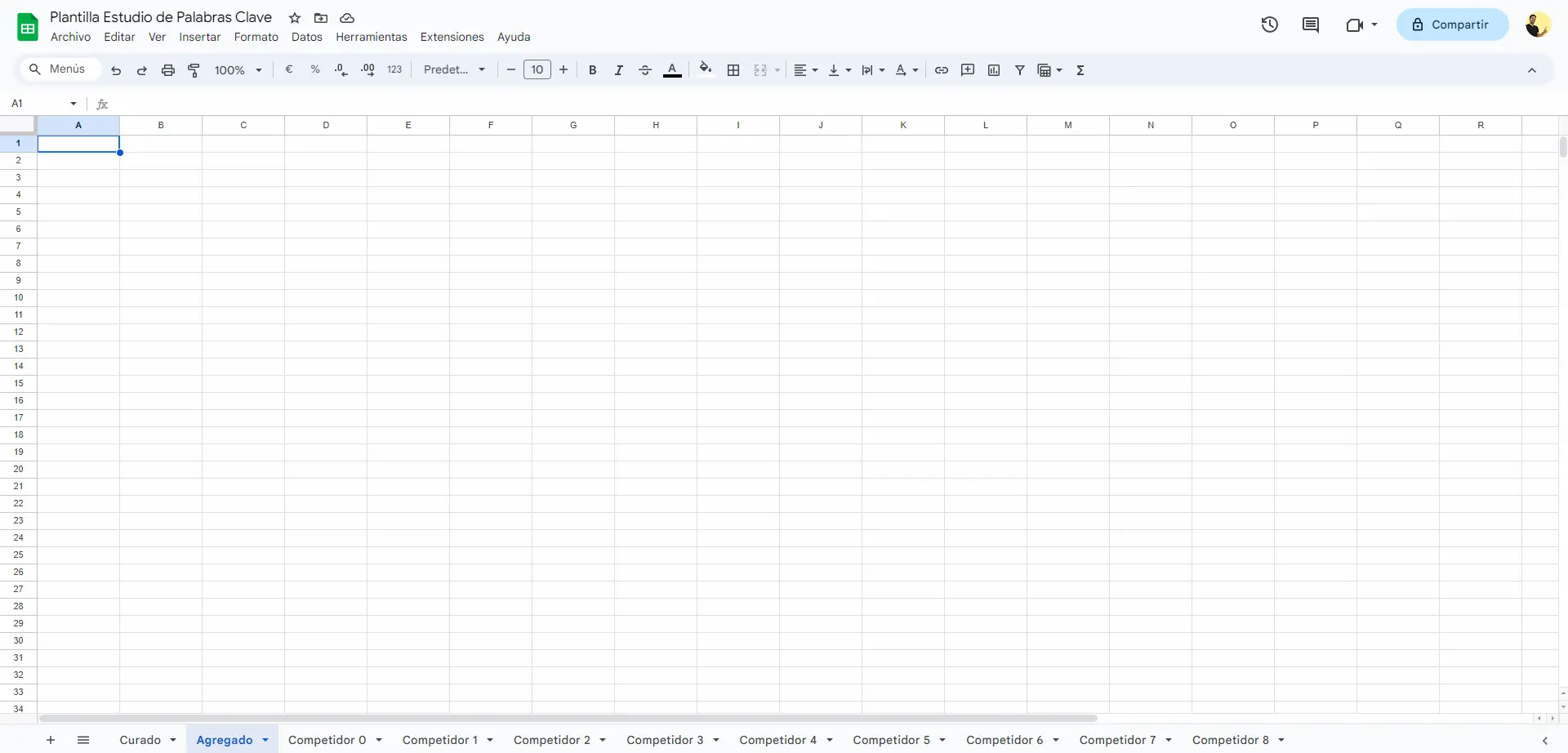 Si prefieres descargar una plantilla de Google Sheets (plantilla keyword research) ya preparada con todos los pasos que vamos a seguir a continuación, puedes hacerlo al final del artículo 😉