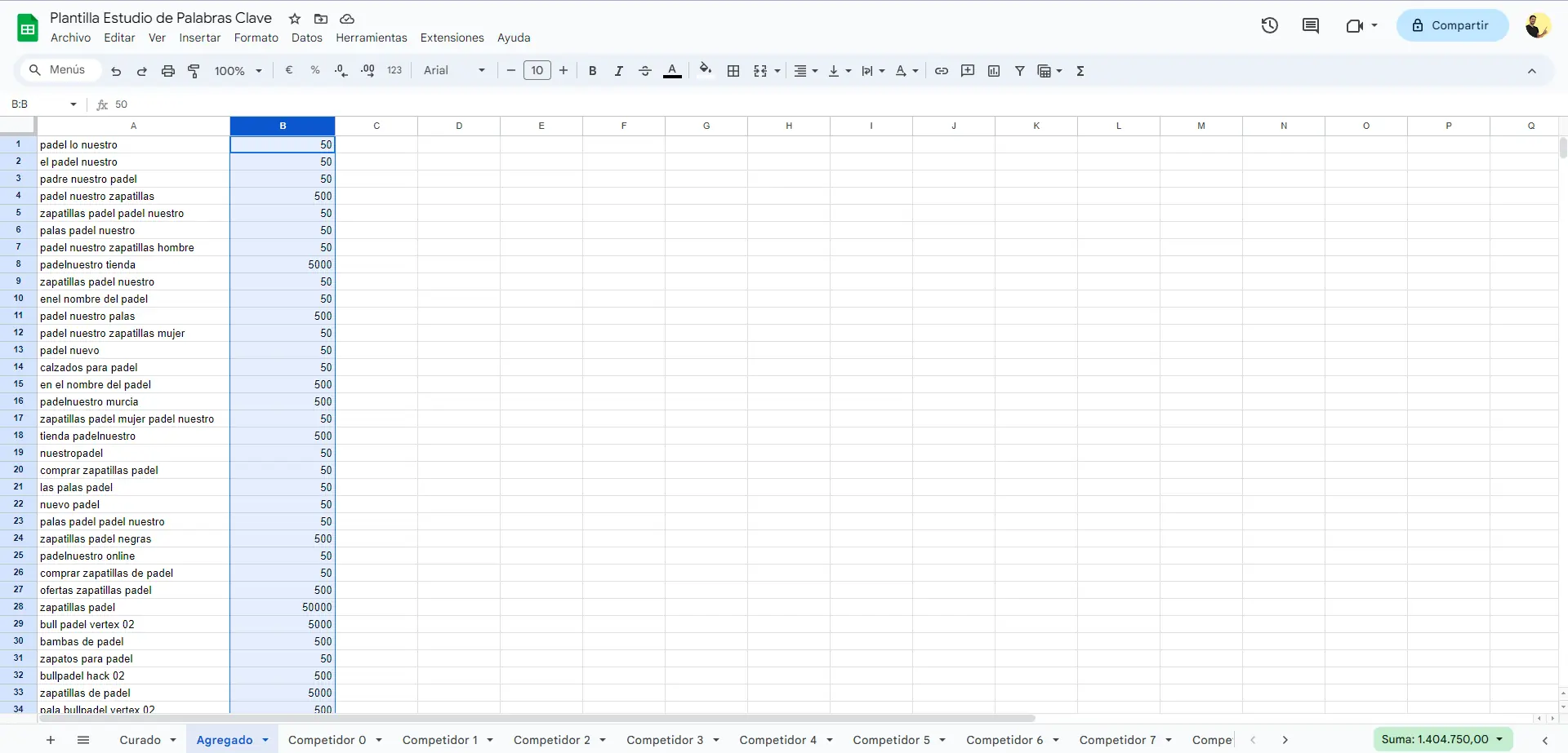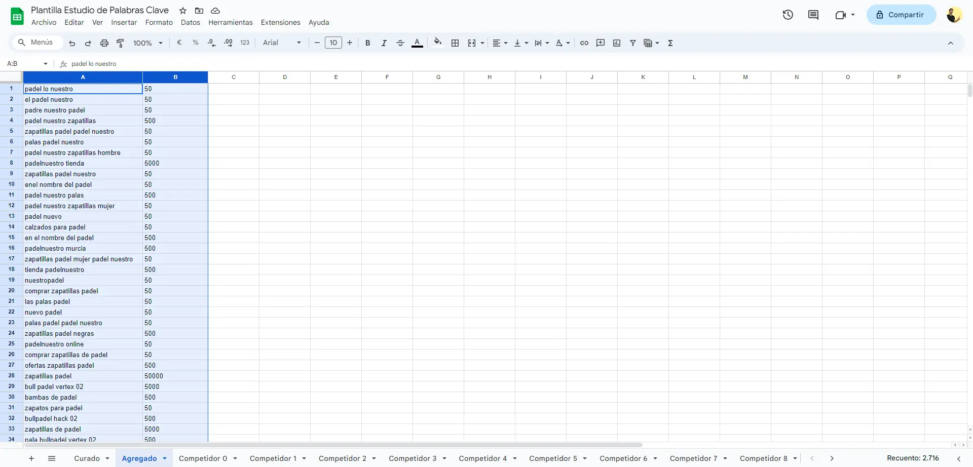 Ahora repite los pasos para cada uno de los competidores que queiras analizar y extraer sus palabras clave.