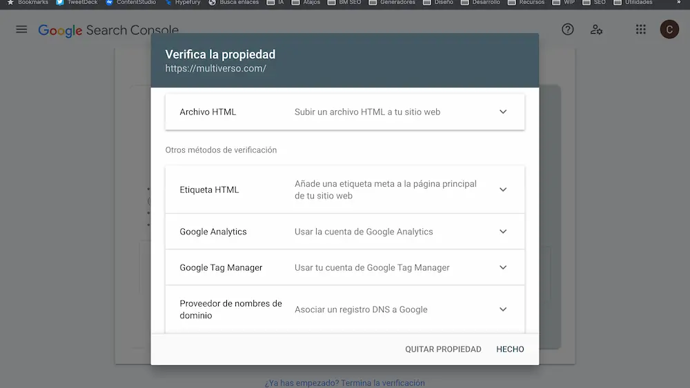En este caso tienes más métodos disponibles para verificar tu propiedad.