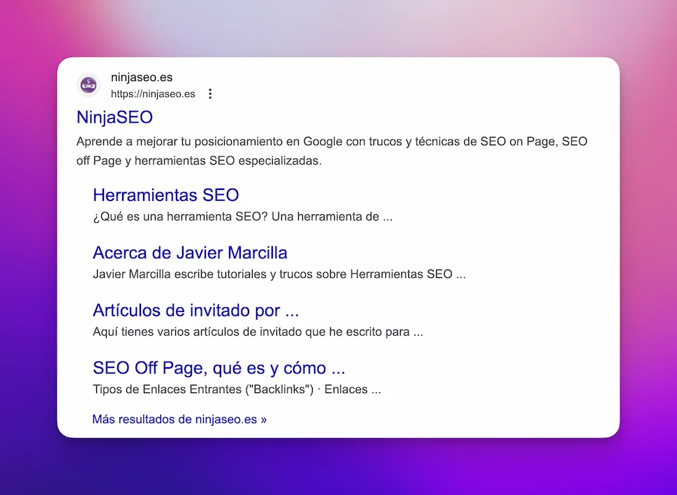 Pues depende: esta herramienta te permite ver cómo los enlaces de tu sitio web aparecen en los resultados de búsqueda de Google, lo que solemos llamar “sitelinks“.