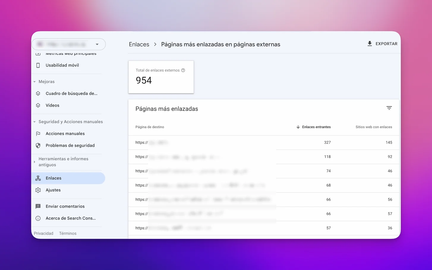 Enlaces (backlinks) en Search Console