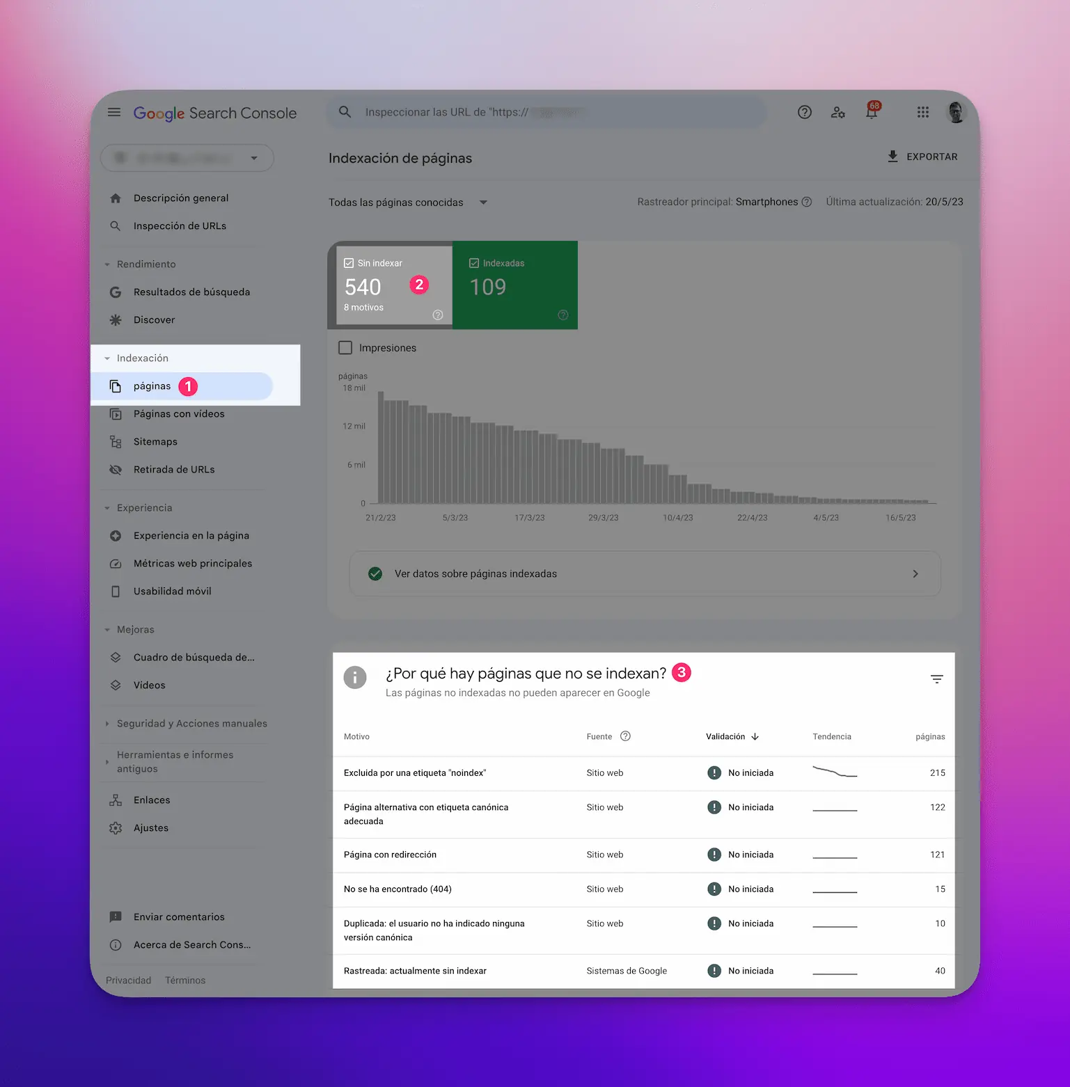 Entendiendo el panel de Google Search Console
