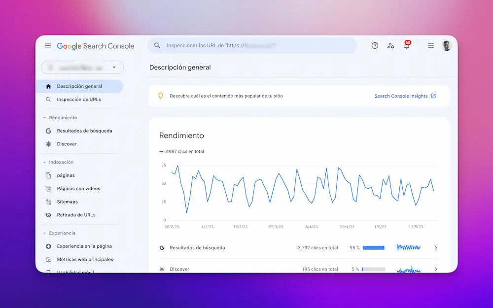 - El panel de control es tu tablero de mando: Te proporciona una visión general de cómo está funcionando tu sitio web en Google. 🎛️