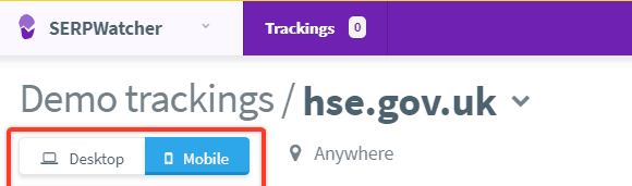 SERPWatcher monitoriza por separado las posiciones de tus keywords para las búsquedas realizadas desde ordenadores “de mesa” y dispositivos móviles.